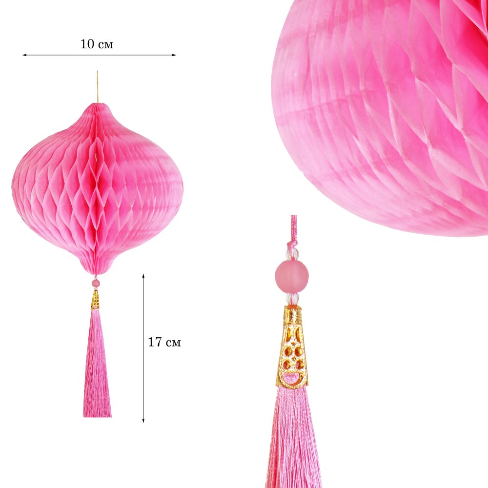 Бумажное украшение Шар-соты с кисточкой, розовый - 1шт.