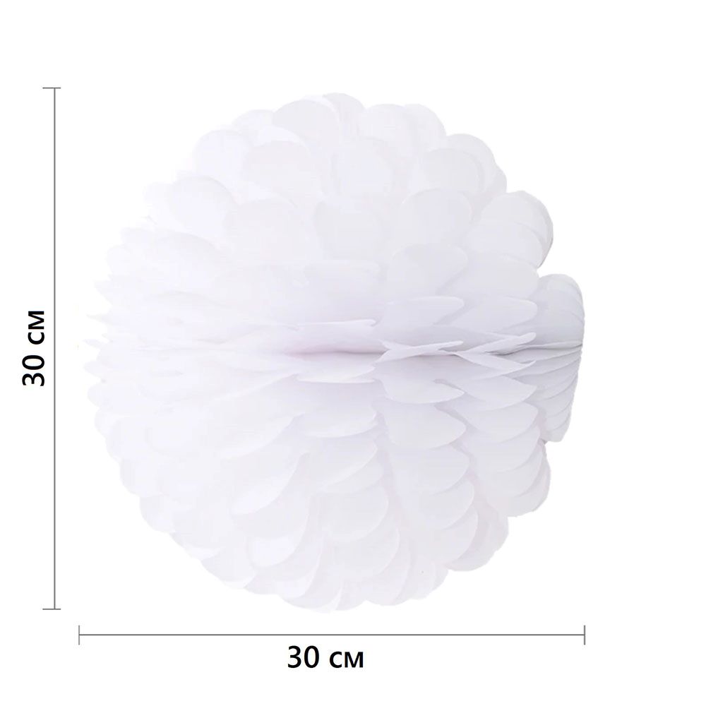 Бумажное украшение Цветочный шар-соты 30 см, белый