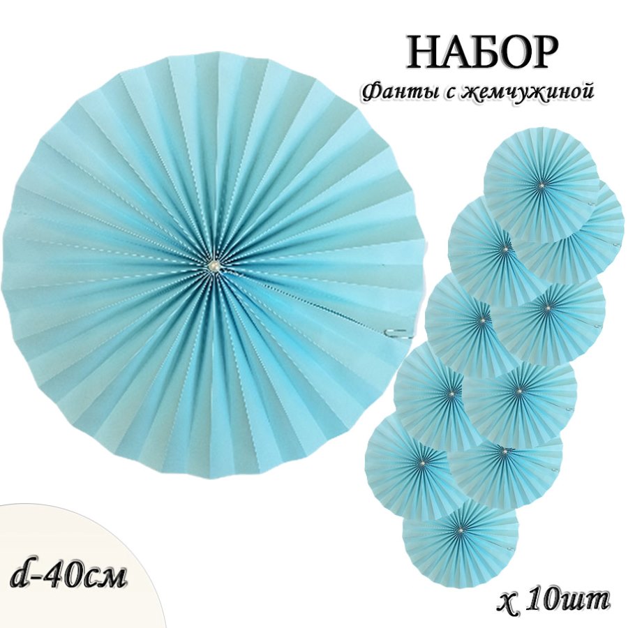 Фанты с жемчужиной НАБОР 10шт х 40см, голубой