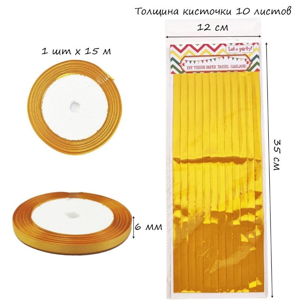 Гирлянда тассел 12 кисточек по 10 листов, фольга золото