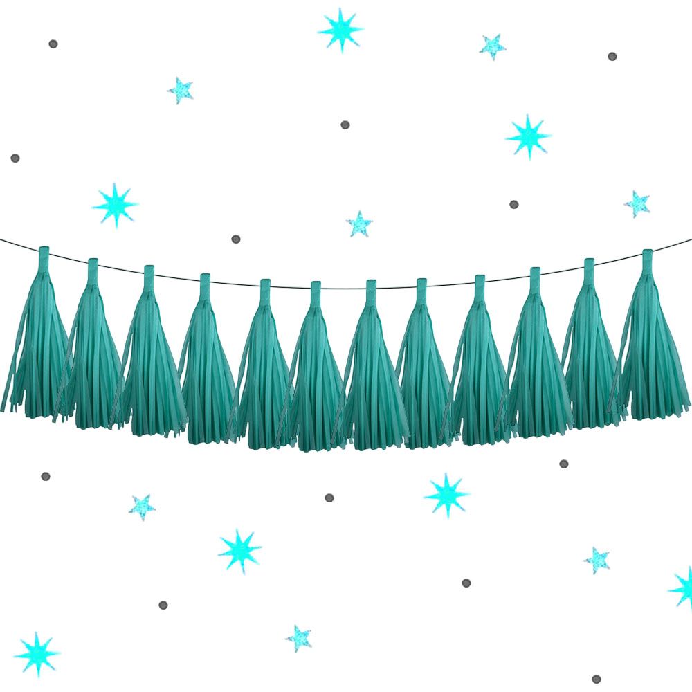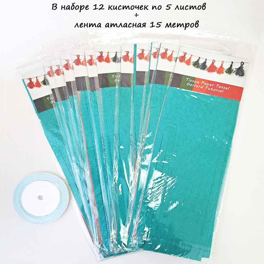 Гирлянда тассел 12 кисточек по 5 листов, изумрудный