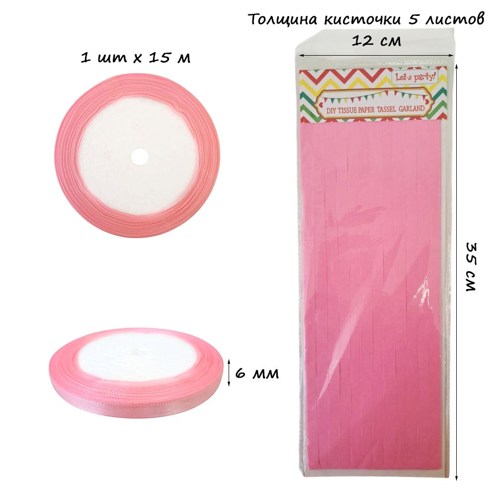 Гирлянда тассел 12 кисточек по 5 листов, розовый