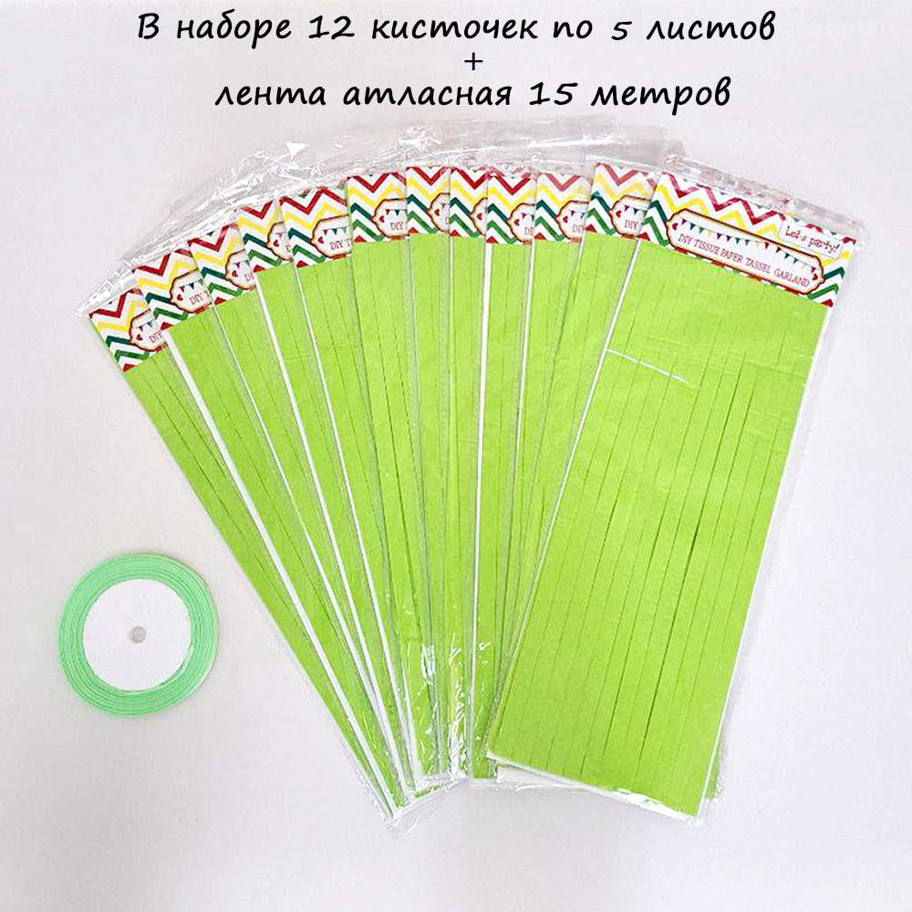 Гирлянда тассел 12 кисточек по 5 листов, салатовый