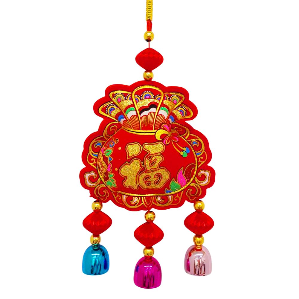 Китайская подвеска с колокольчиками 13х35см, Денежный мешок