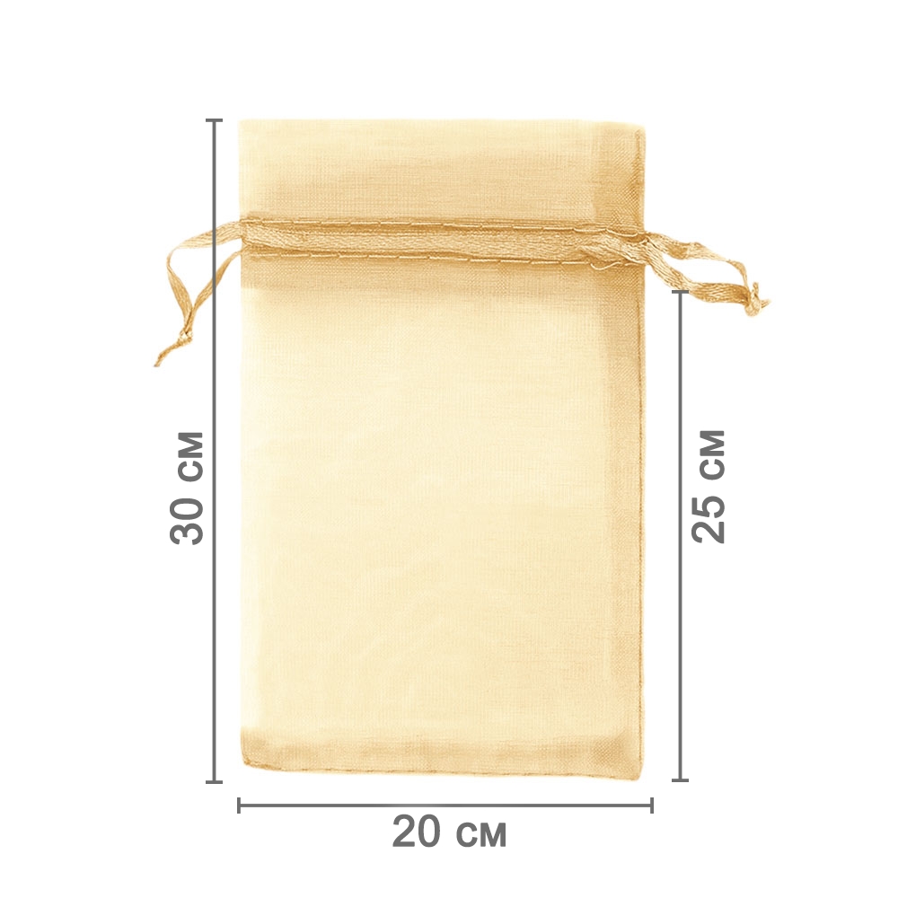 Мешочек из органзы 20 х 30 см — стильный аксессуар для упаковки средних и крупных предметов. Полупрозрачная ткань подчёркивает содержимое и придаёт аккуратный вид.