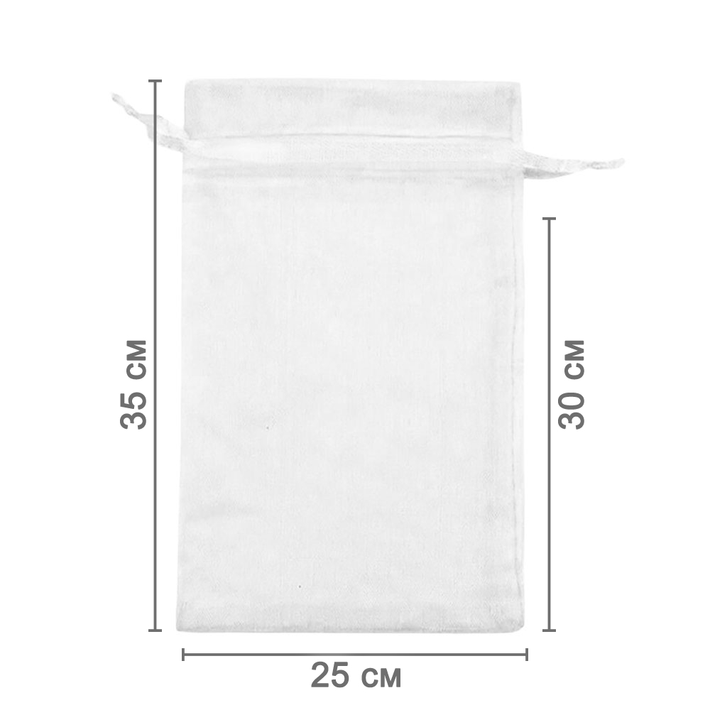 Мешочек из органзы 25 х 35 см — практичный аксессуар для упаковки крупных предметов и подарков. Лёгкая ткань подчёркивает содержимое и придаёт праздничный вид.