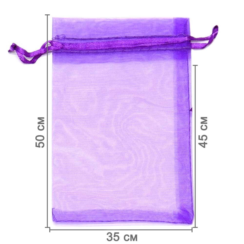 Мешочек из органзы 35 х 50 см — стильная и удобная упаковка для крупных подарков и хранения больших предметов. Лёгкая ткань подчёркивает содержимое и создаёт праздничный вид.