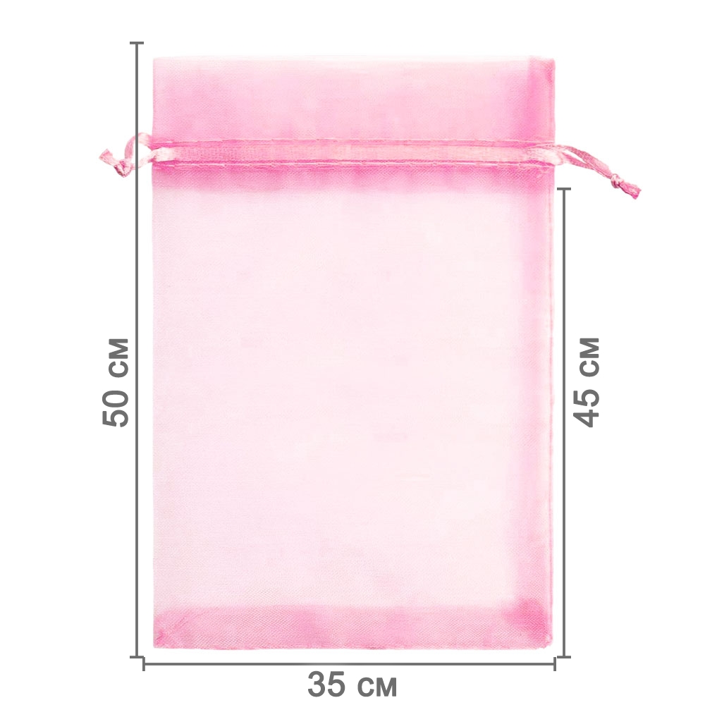 Мешочек из органзы 35 х 50 см — стильная и удобная упаковка для крупных подарков и хранения больших предметов. Лёгкая ткань подчёркивает содержимое и создаёт праздничный вид.
