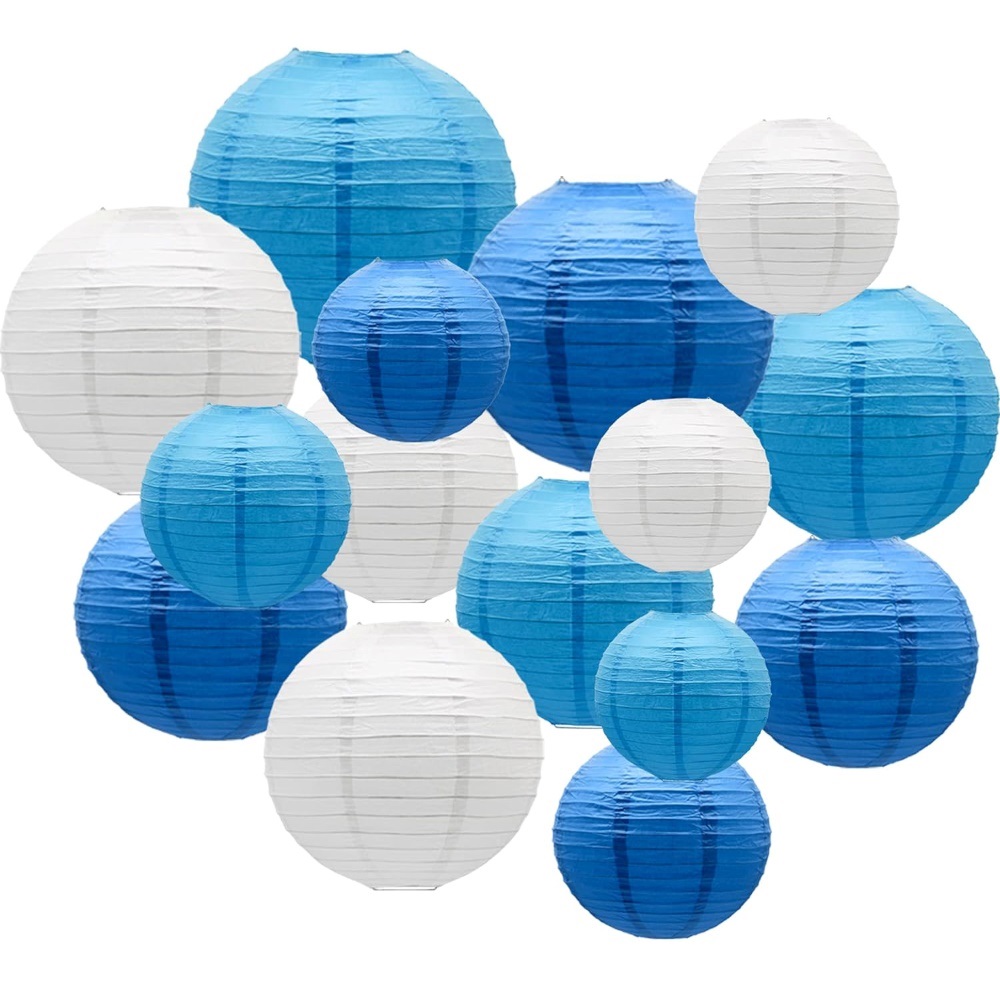 Набор подвесные фонарики 15 шт, белый+синий+т.синий