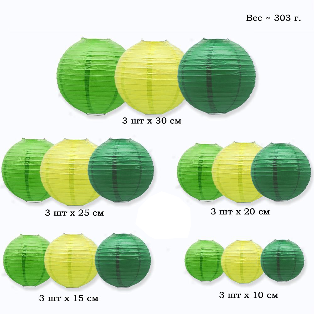 Набор подвесные фонарики 15 шт салатовый+зеленый+т.зеленый