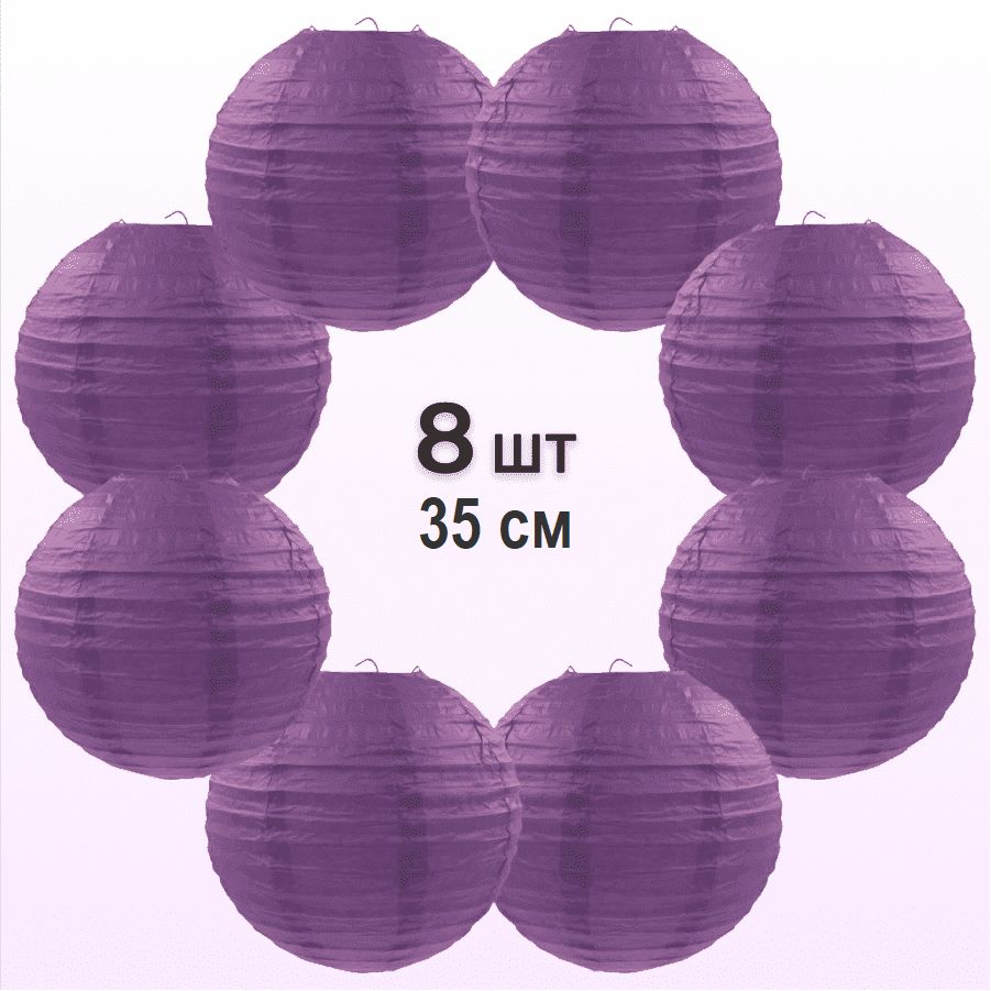 Комплект подвесные фонарики 35 см х 8 шт, фиолетовый