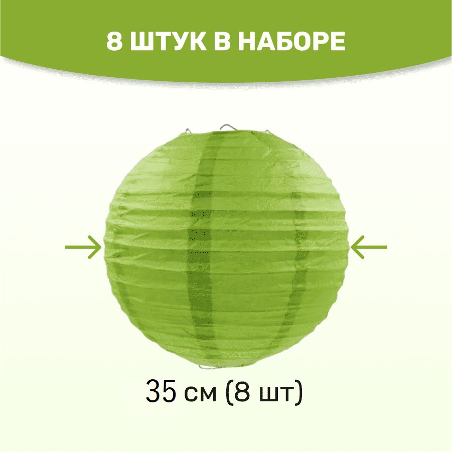 Комплект подвесные фонарики 35 см х 8 шт, темно-салатовый