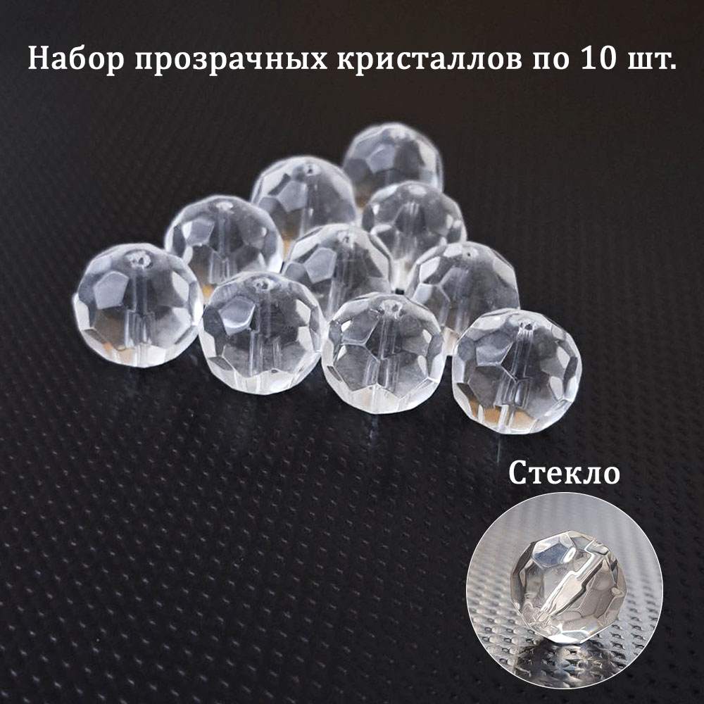 Набор прозрачных кристаллов "Граненый круг" 10 штук по 16 мм подойдет для творчества и оформления декора.