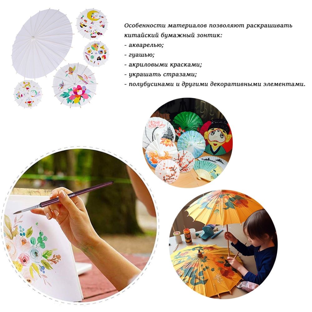 Китайские бумажные зонтики 20 х 16 см белый